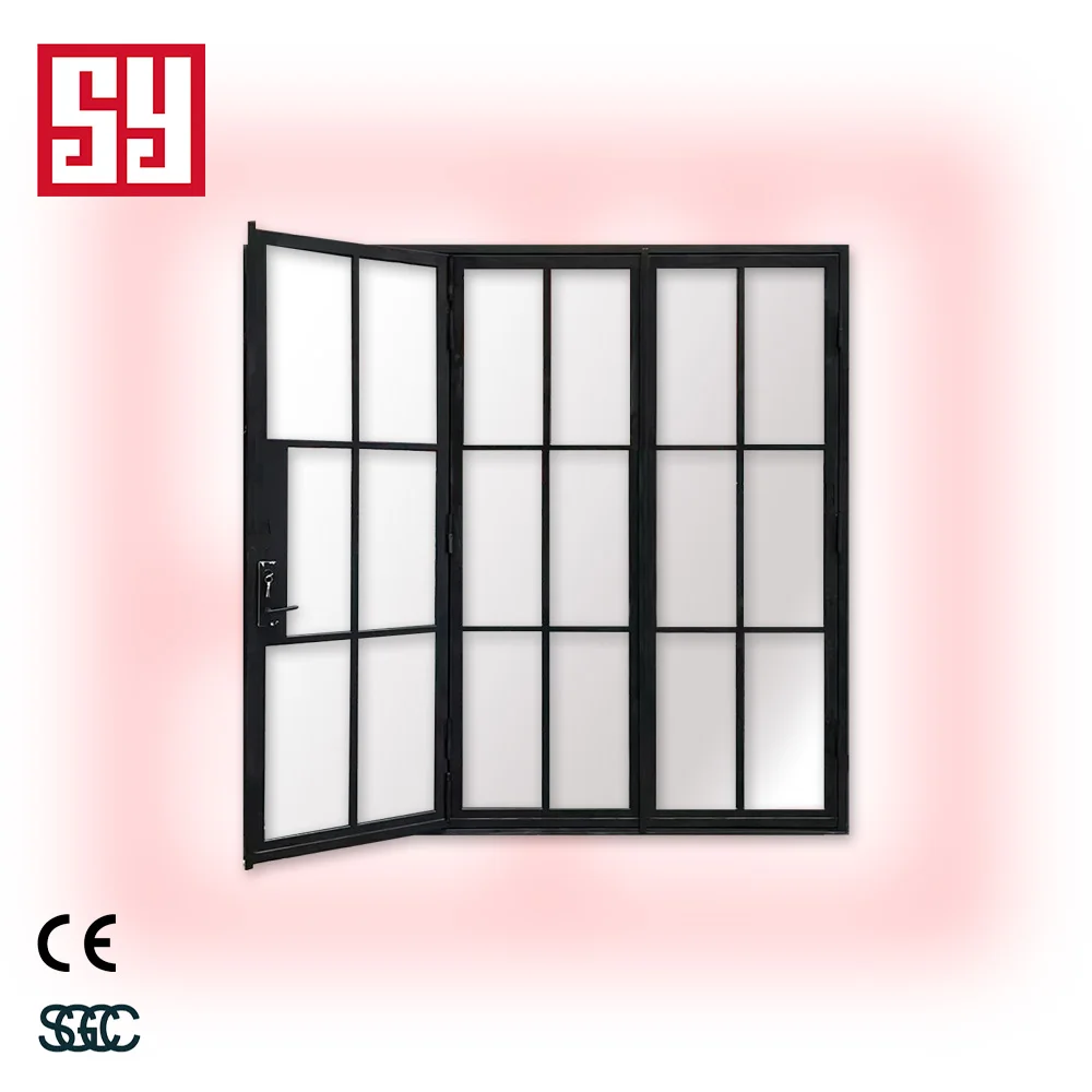 French Style Bi-Fold Iron Interior Entry Door Foldable Windproof Finish CE Certified Double Glass Steel Material 5 Year Warranty