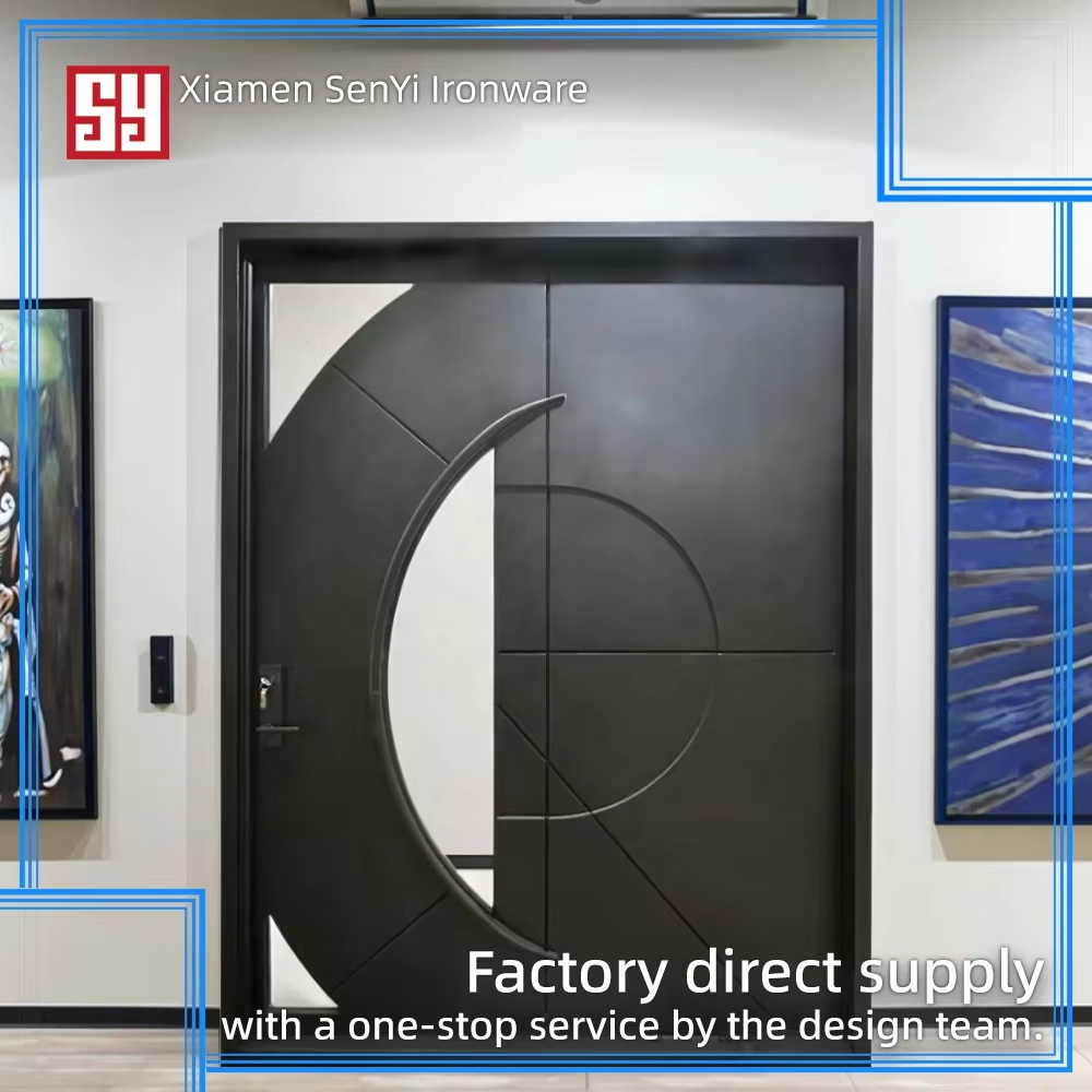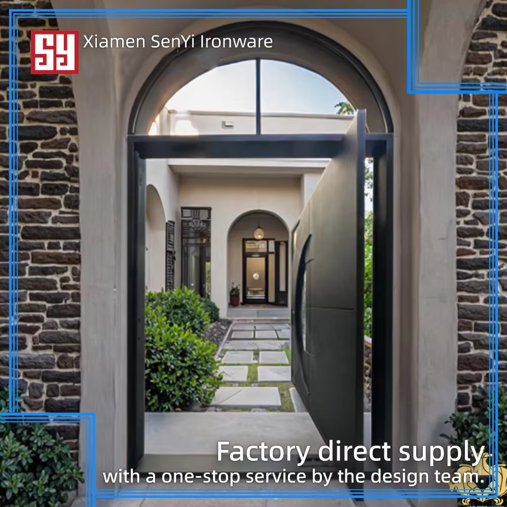 Modern Black Wrought Iron Pivot Door Rotating Door & Folding Rolling Open Style Unique Other Genre Door