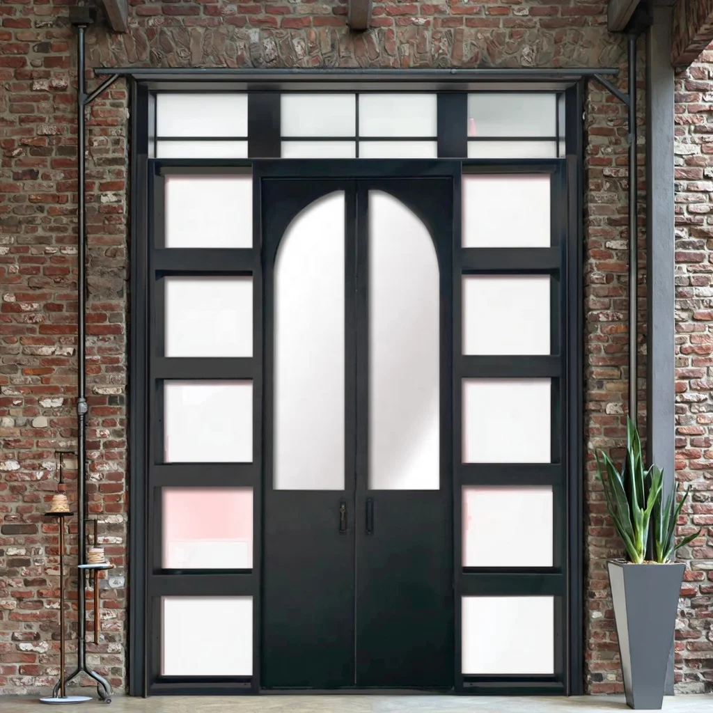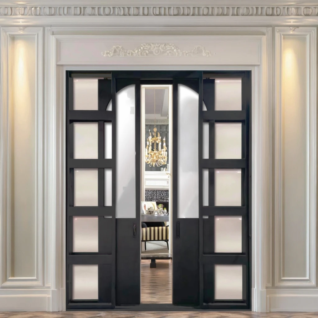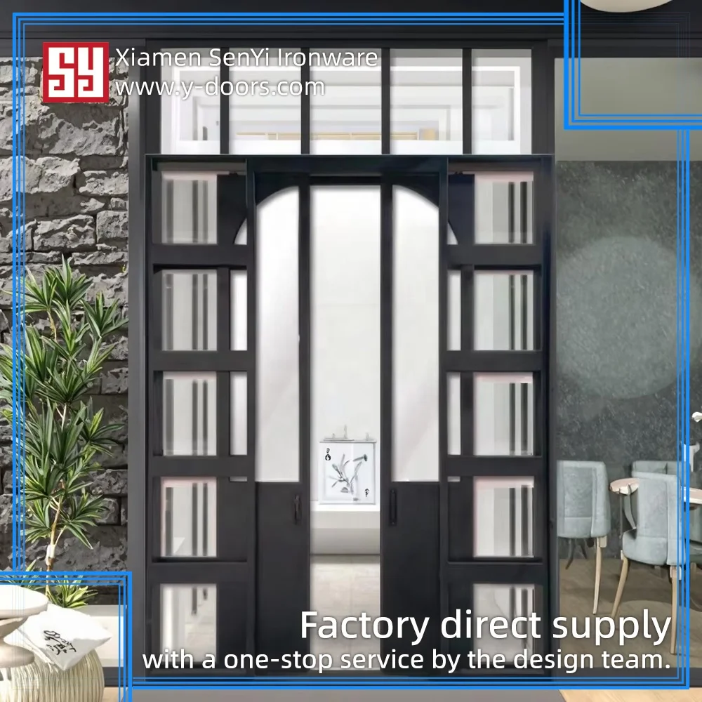 French Wrought lron Entry Door Variable Light MinimalistDesign Sliding Style for Interior Exterior Anti-Theft GlassDoor |
