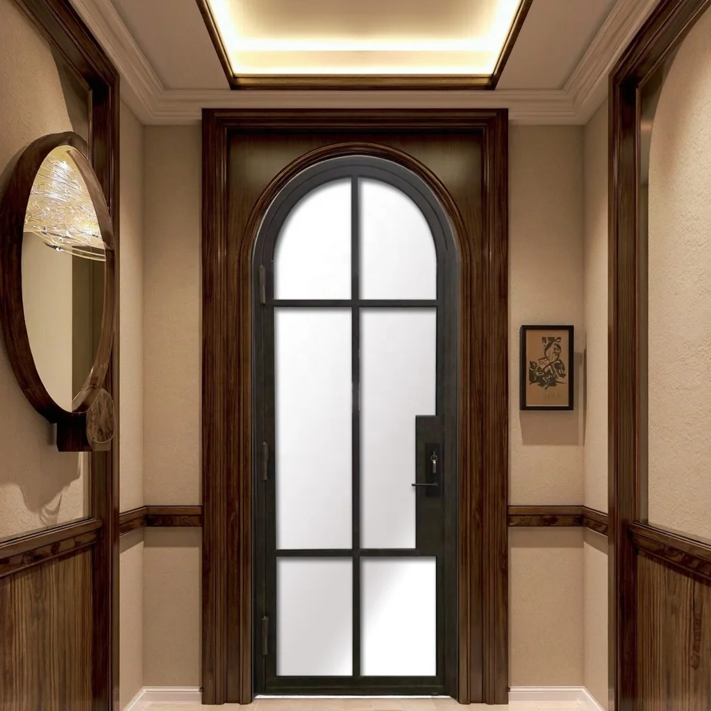 French Wrought lron Entry Door Variable Light MinimalistDesign for Interior Exterior Anti-Theft GlassDoor |
