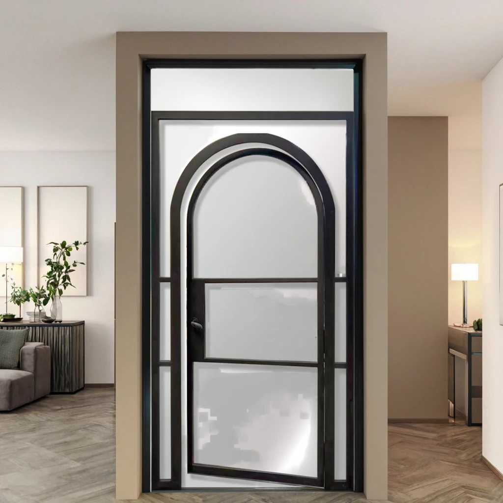 French Wrought lron Entry Door Variable Light MinimalistDesign for Interior Exterior Anti-Theft GlassDoor |