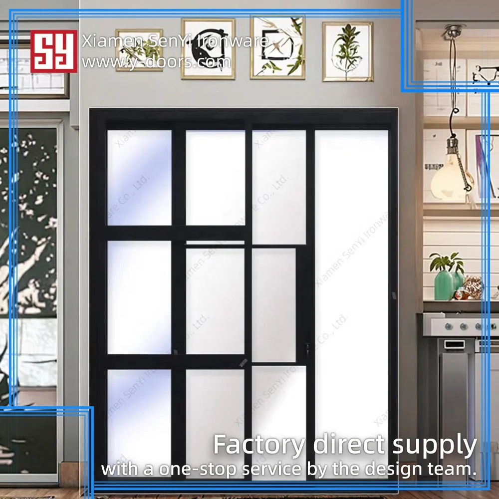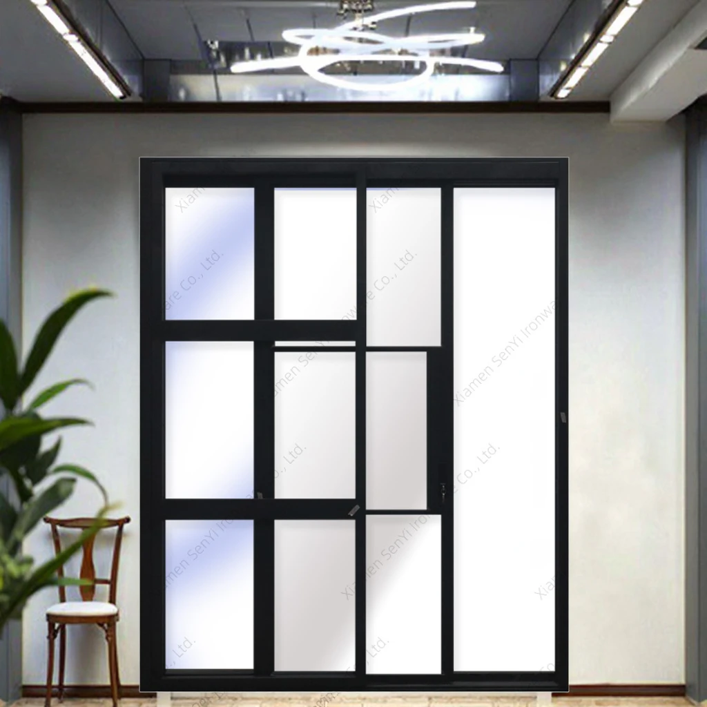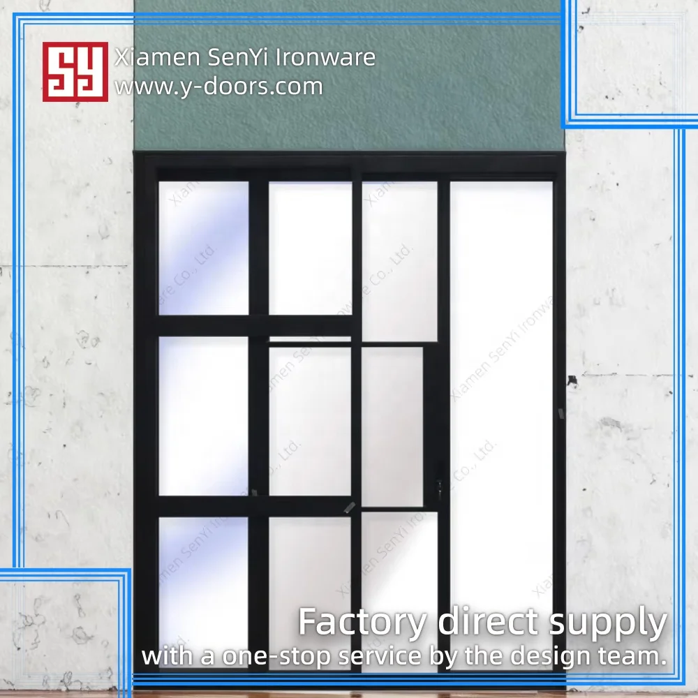 French Wrought lron Entry Door Variable Light MinimalistDesign Sliding Style for Interior Exterior Anti-Theft GlassDoor |