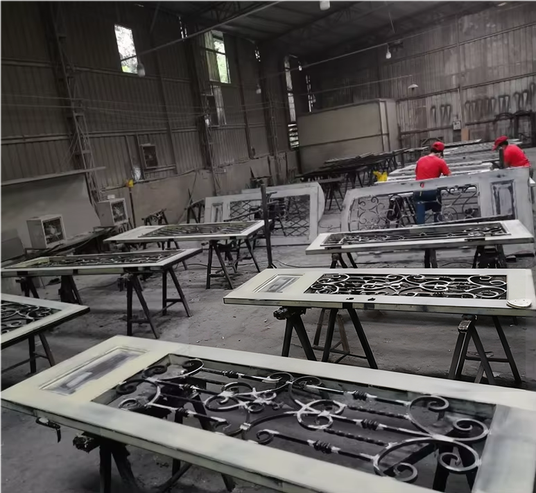 US Wholesale Customized Wrought Iron Door: steel main structure, double exterior design, ideal for bulk orders, blends durability and style for commercial/residential use.